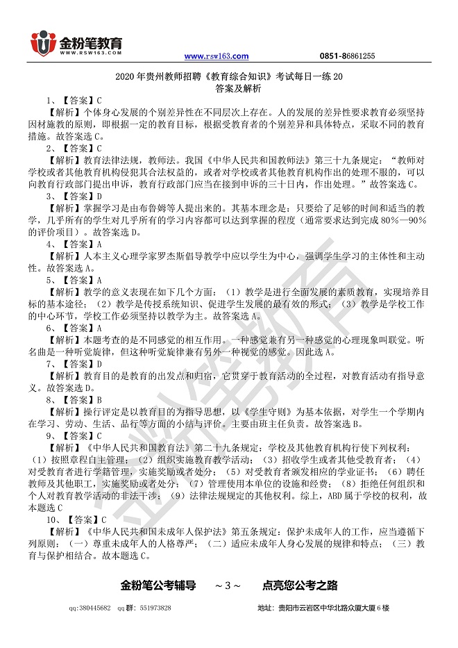 贵州教师招聘考试笔试题库提供教师招聘考试笔试科目《教育综合知识》和事业单位D类《综合应用能力》题目练习,题目包括教师考试专项练习题、模拟题、考试真题等,为了帮助考生更好的进行备考,金粉笔教育老师整理了关于《教育综合知识》教师考试题目。每日题目发布后,考生自行进行练习,更多教师招聘信息和考试题目请关注13378508157、13368515037(微同)。