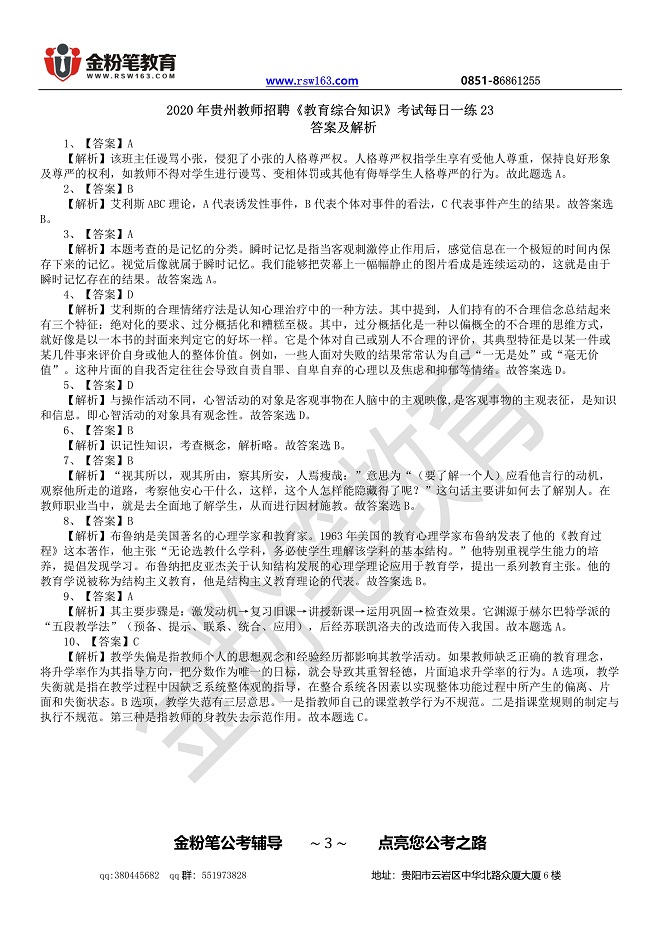 贵州教师招聘考试笔试题库提供教师招聘考试笔试科目《教育综合知识》和事业单位D类《综合应用能力》题目练习,题目包括教师考试专项练习题、模拟题、考试真题等,为了帮助考生更好的进行备考,金粉笔教育老师整理了关于《教育综合知识》教师考试题目。每日题目发布后,考生自行进行练习,更多教师招聘信息和考试题目请关注13378508157、13368515037(微同)。